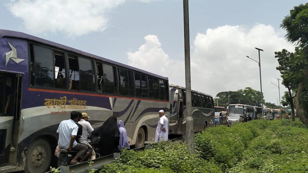 ভৈরবে  শুক্রবার ভোর থেকে ঢাকা-সিলেট মহাসড়কে ২০  কিলোমিটার জুড়ে যানজটে ভোগান্তিতে যাত্রীরা