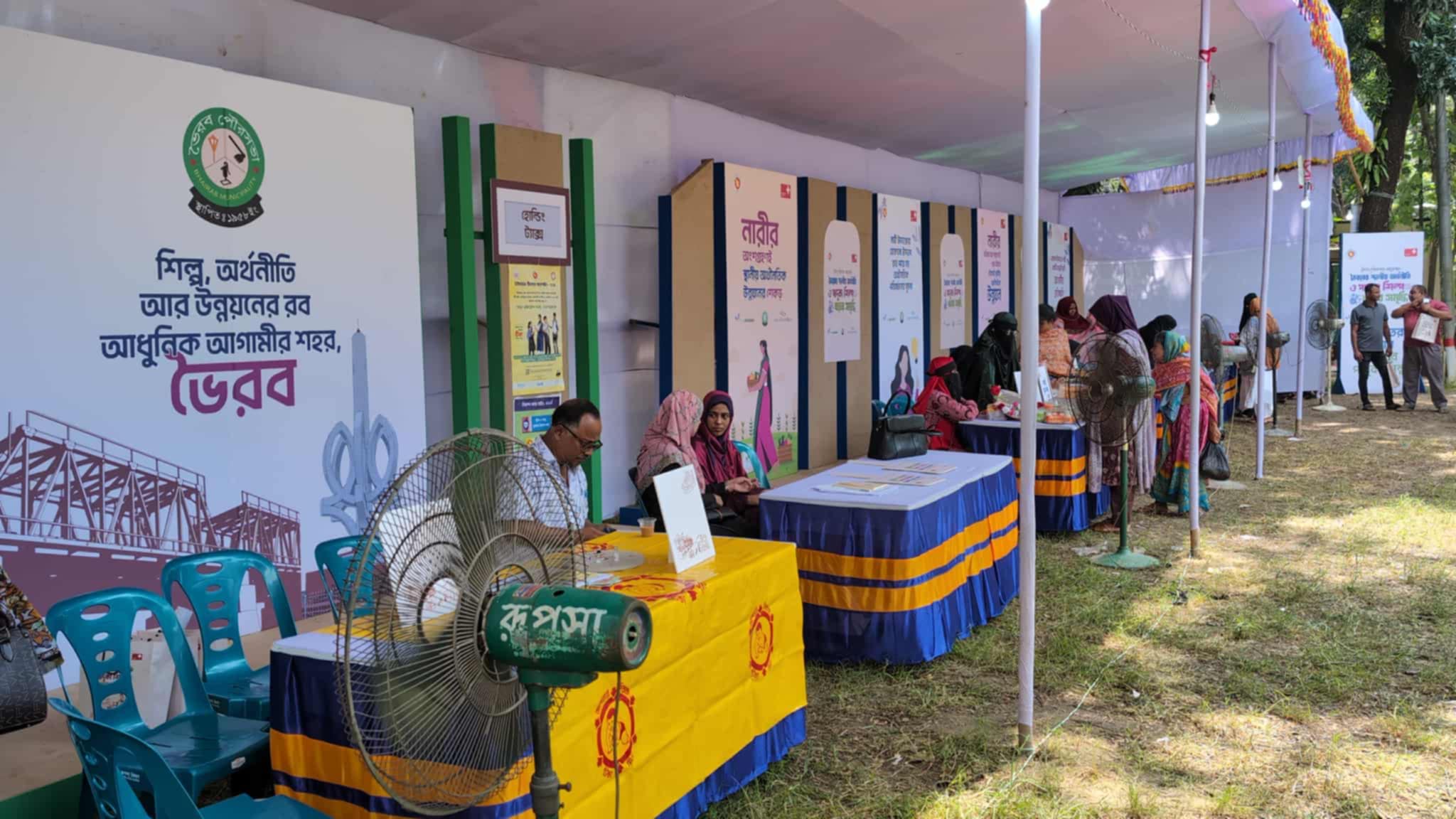 ভৈরবে পাদুকা শিল্প ও নারী উদ্যোক্তা প্রদর্শনীতে সাজানো রয়েছে স্টল কিন্তু নেই কোন  দর্শনার্থী। অনুষ্ঠান করাটাই কর্তৃপক্ষের ভরসা।