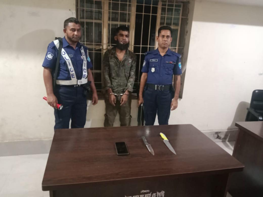 ভৈরবে ছিনতাই করে পালানোর সময় সেনাবাহিনীর হাতে আটক চিহ্নিত ছিনতাইকারী সজীব।