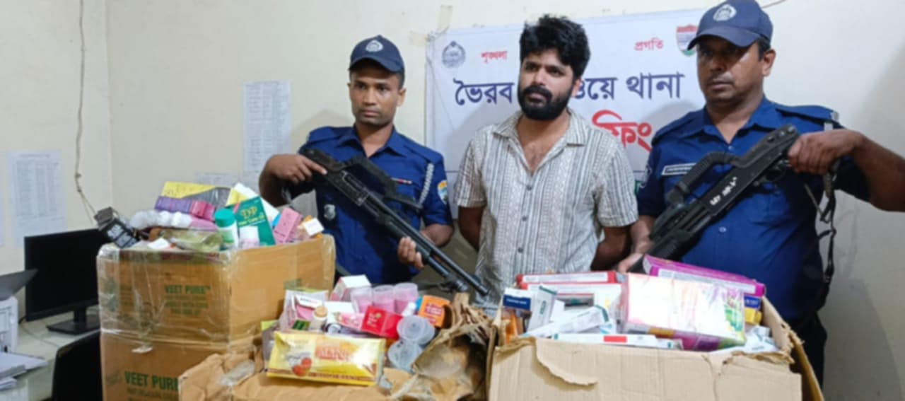 ভৈরবে তিন কার্টুন ভারতীয় কসমেটিকসসহ চোরাকারবারি আটক