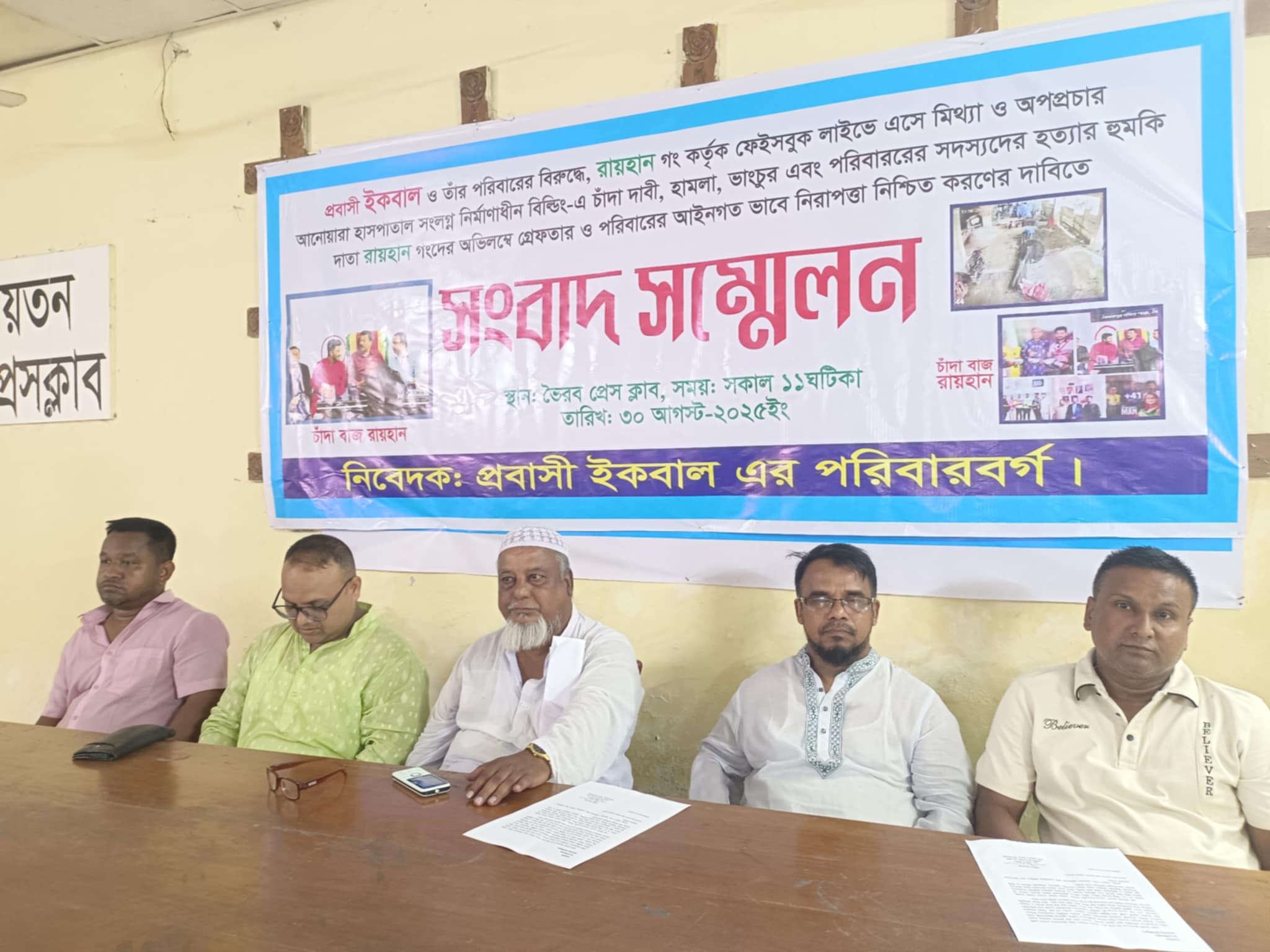 ভৈরবে ভবন নির্মাণে চাঁদা দাবী ও প্রাণনাশের হুমকির ঘটনায় থানায় মামলা। সংবাদ সন্মেলন করে অভিযোগ।